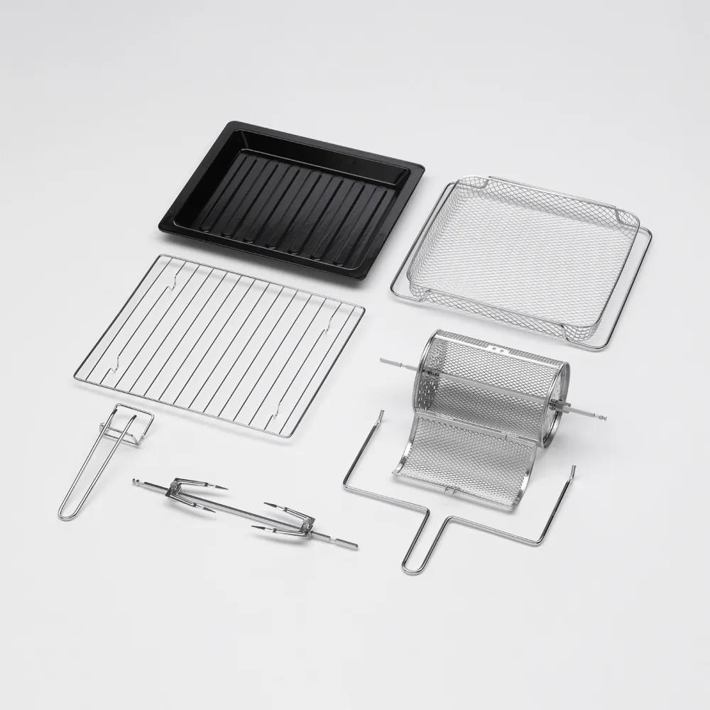 12 выбираемых программ, таких как жарка во фритюре, запекание, гриль, сухофрукты и многое другое Равномерная конвекция PowerConvection — идеальный равномерный поток горячего воздуха Rapid HeatControl – готов к немедленному запуску без нагрева Элегантный «черный дизайн» с большим смотровым окном 3 уровня поддержки для решетки и противня + вращающийся вертел и корзина для жарки Включает съемный поддон для крошек для легкой очистки Регулируемый таймер от 1 до 120 минут / сухофрукты 240 минут (с шагом 1 минута) Регулировка температуры от 40 °C до 230 °C (с шагом 5 °C) Внутреннее освещение может включаться по мере необходимости 6 долговечных нагревательных элементов из нержавеющей стали (4 вверху, 2 внизу)