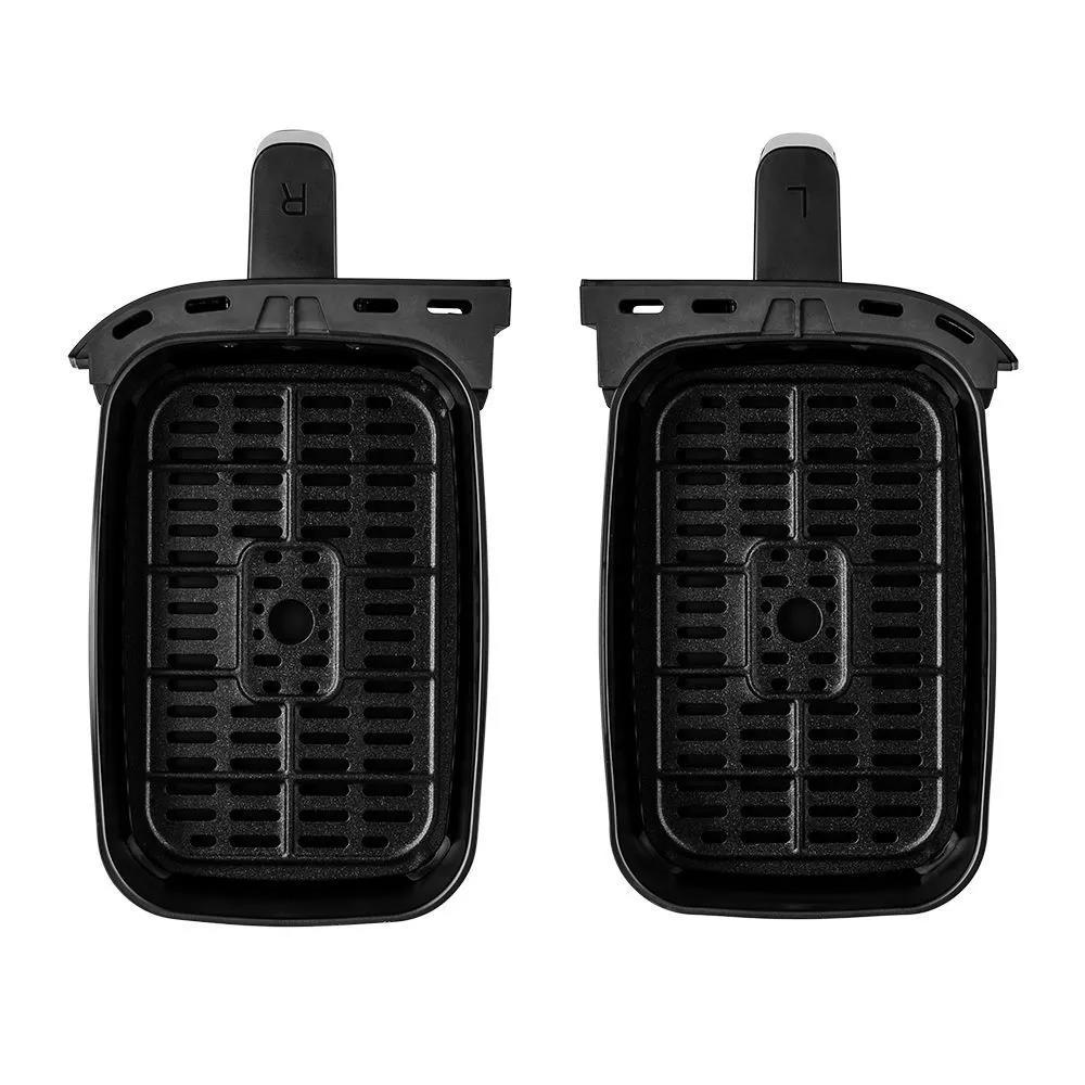 Аэрогриль готовит одновременно 2 разных блюда! Главное его преимущество - наличие 2 нагревателей и 2 поддонов, что позволяет запекать 2 разных блюда одновременно, установив для каждого свои настройки t° и таймера. Вы можете готовить основное блюдо и гарнир к одному времени и подать к столу горячими.