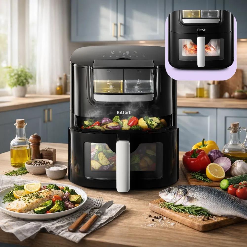 Аэрогриль Kitfort КТ-8159 7л 1800Вт черный (1800 Вт /7 л ) - Интернет-магазин У Гриши: бытовая техника, электроника, товары для дома и др.