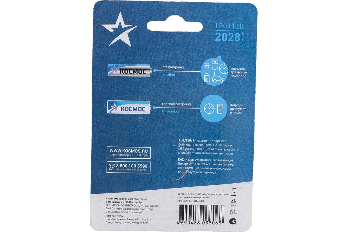 Батарейка Космос KOCLR03BL8 серебро/голубой (ААА (R03;LR03;FR03) 1,5 В щелочная (алкалиновая)) - Интернет-магазин У Гриши: бытовая техника, электроника, товары для дома и др.