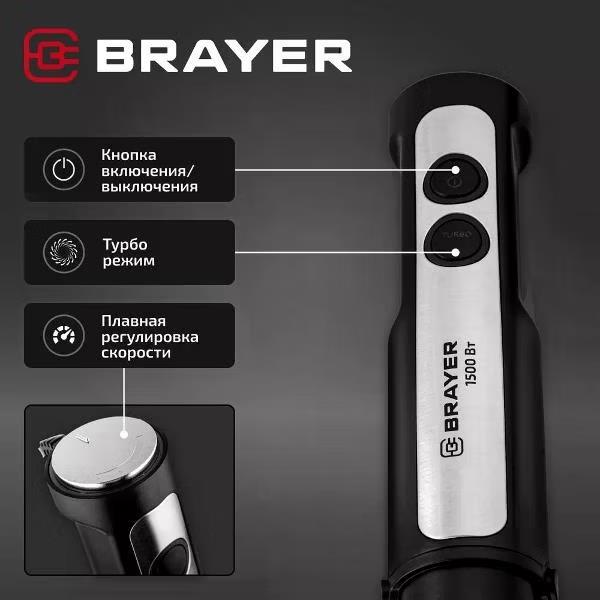 Блендер Brayer BR1263 (погружной/1500 Вт/черный, стальной)