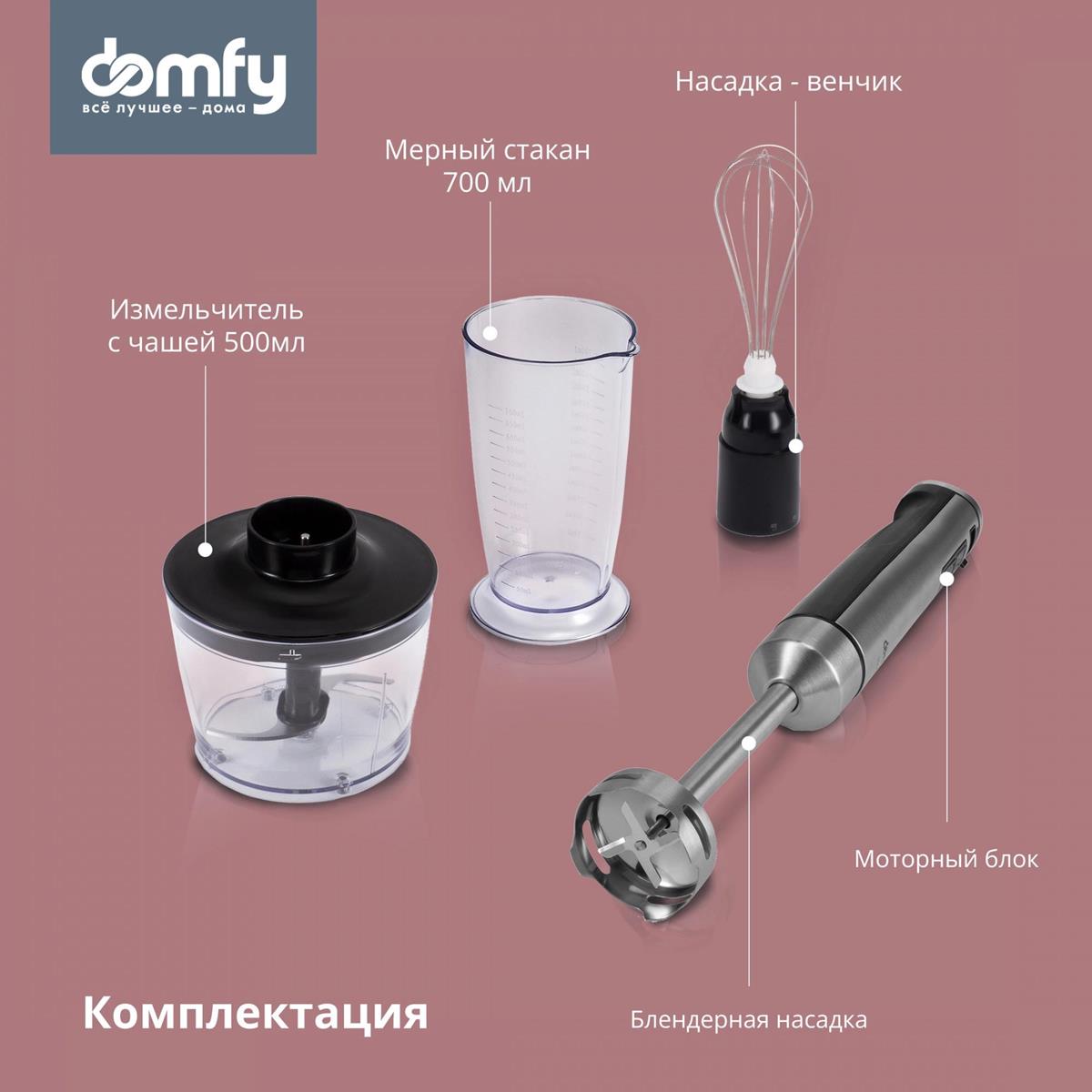 Блендер Domfy DSM-HB401 (погружной/1500 Вт/серебристый, черный) - Интернет-магазин У Гриши: бытовая техника, электроника, товары для дома и др.