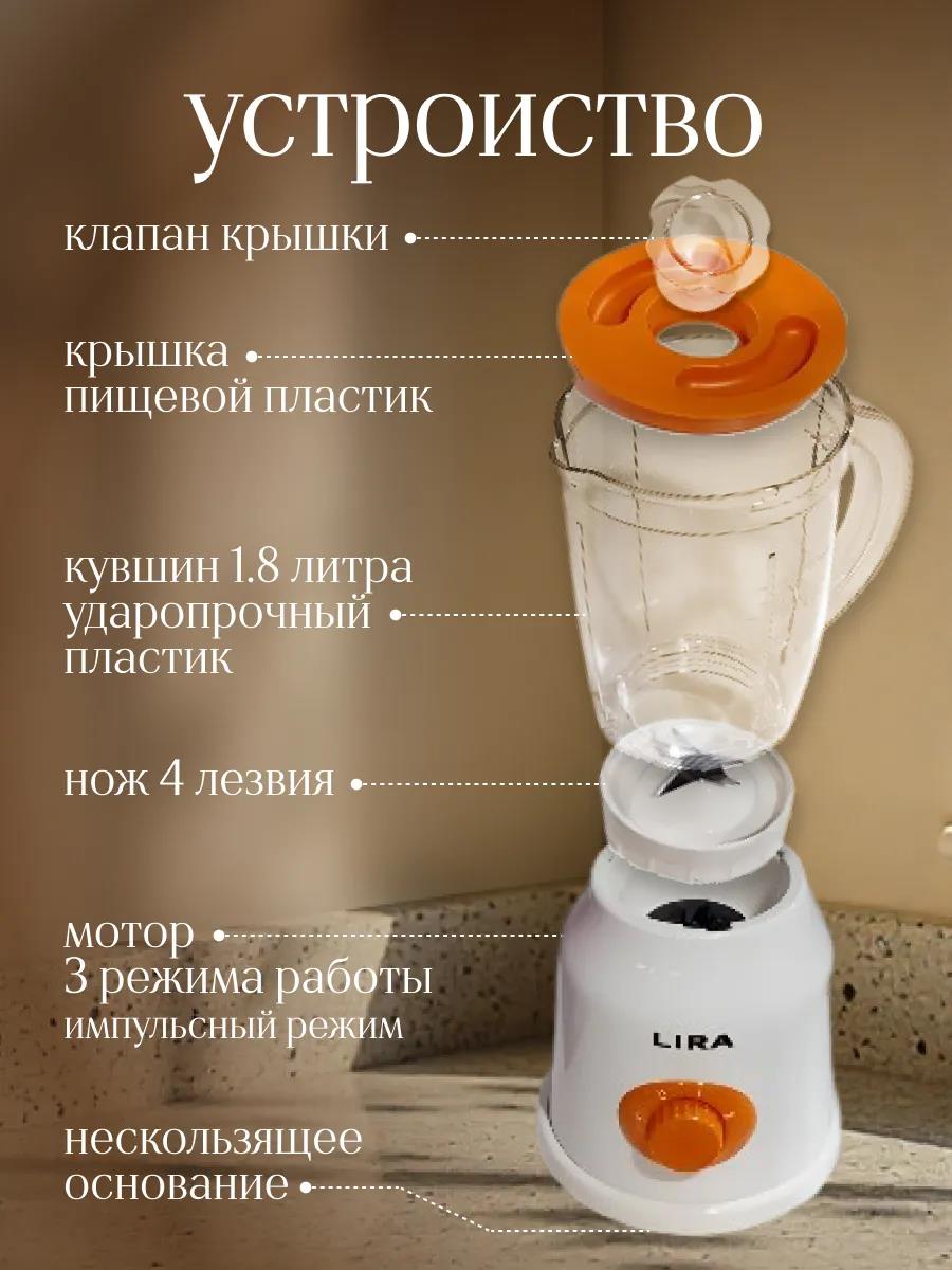 Блендер Lira LR0211 (стационарный/600 Вт/оранжевый, белый) - Интернет-магазин У Гриши: бытовая техника, электроника, товары для дома и др.