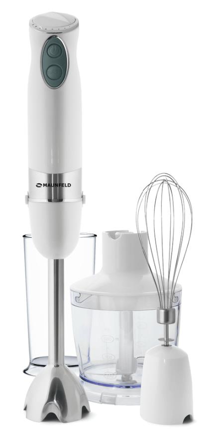 Этот погружной мультиблендер, мощностью 1000 Вт поставляется в комплекте с целым арсеналом кухонных аксессуаров. Погружная насадка блендера выполнена из нержавеющей стали, корпус изготовлен из высокотехнологичной ослепительно белой пластмассы. Блендер снабжен двумя прорезиненными клавишами управления, включающих скоростной режим и режим турбо. Скорость плавно регулируется в верхней части блендера. Погружная насадка блендера с двумя ножами также выполнена из нержавейки, что значительно увеличивает ее срок службы, а также позволяет использовать ее для работы с горячими продуктами.