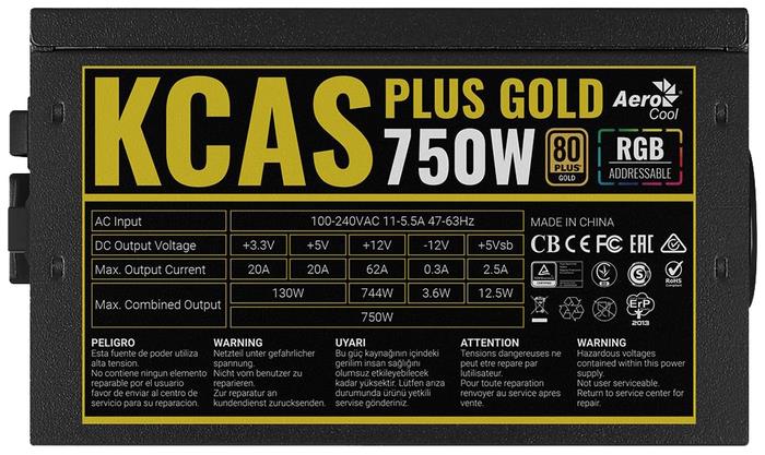 Блок питания AeroCool KCAS PLUS GOLD 750W (4710562759211) (750 Вт )