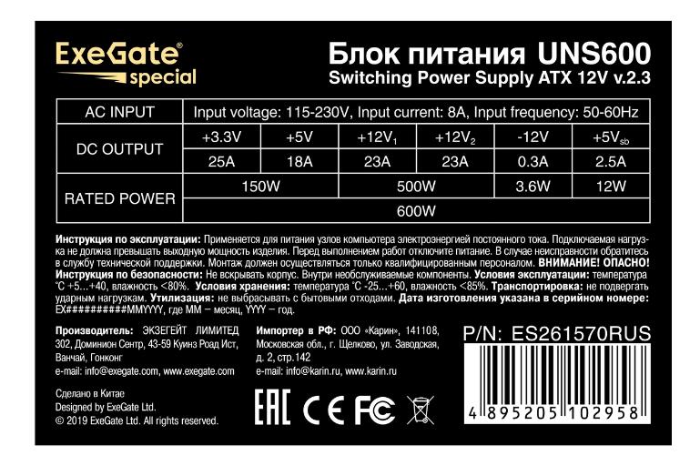 Блок питания ExeGate UNS600 (EX284719RUS) (600 Вт )