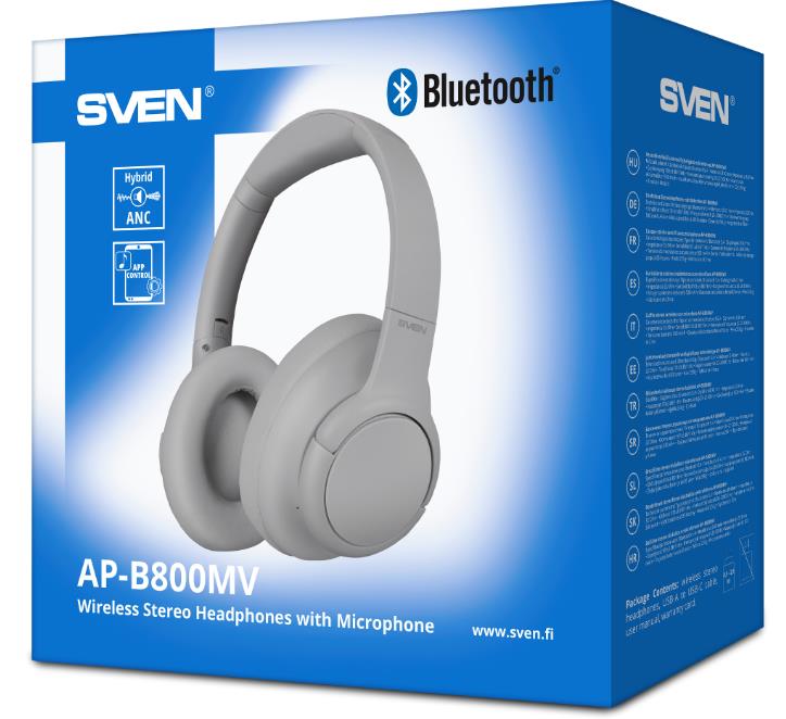 Bluetooth-гарнитура/наушники Sven AP-B800MV (Bluetooth, hybrid ANC, APP, 4 mics 500mAh) (серый) - Интернет-магазин У Гриши: бытовая техника, электроника, товары для дома и др.
