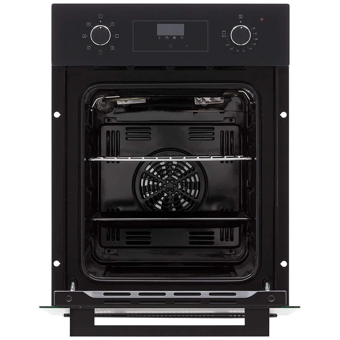 Духовой шкаф Ritus 45 BL BL G2 — компактный прибор шириной 45 см, созданный для интеграции в небольшие модули и для тех, кто ценит лаконичный дизайн и функциональность, не занимающую лишнего пространства. Передняя панель оснащена LED-дисплеем и поворотными ручками для интуитивного управления, а электронный программатор обеспечивает точный выбор настроек и удобный отсчёт времени. Таймер на отключение и звуковой сигнал оповещают о завершении программы, а функция отложенного старта даст возможность запланировать начало процесса приготовления на удобный момент. Диапазон регулировки температуры от 50 до 260 °C раскрывает широкий спектр кулинарных приёмов: от медленного прогрева до интенсивной запеканки с грилем мощностью 1.2 кВт, который в паре с режимом конвекции создаёт хрустящую корочку и равномерную прожарку.