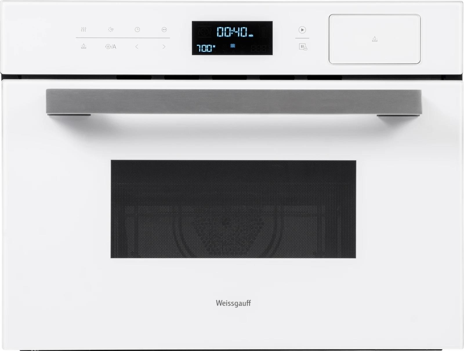 Компактный встраиваемый духовой шкаф от Weissgauff с функцией пара и СВЧ без поворотного стола, выполненный в белом цвете - это невероятное сочетание сразу трёх отдельных устройств,воплощённое в одной модели!