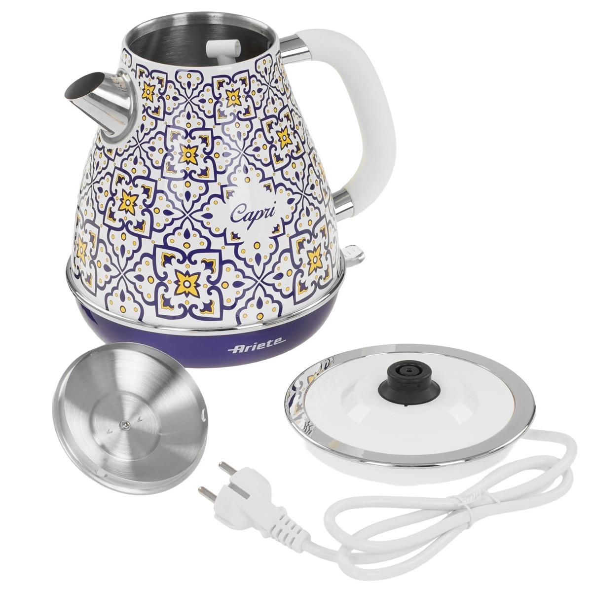 Электрический чайник Ariete 2869/0C Capri (2200 Вт/1,7 л /металл, пластик/синий, белый, рисунок) - Интернет-магазин У Гриши: бытовая техника, электроника, товары для дома и др.