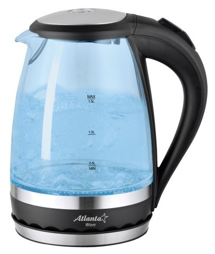 Электрический чайник Atlanta ATH-2463 (2000 Вт/1,5 л /стекло, пластик/прозрачный, черный) - Интернет-магазин У Гриши: бытовая техника, электроника, товары для дома и др.