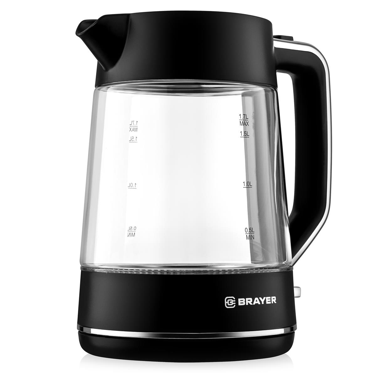 Электрический чайник Brayer BR6102 (2200 Вт/1,7 л /стекло/прозрачный, черный)