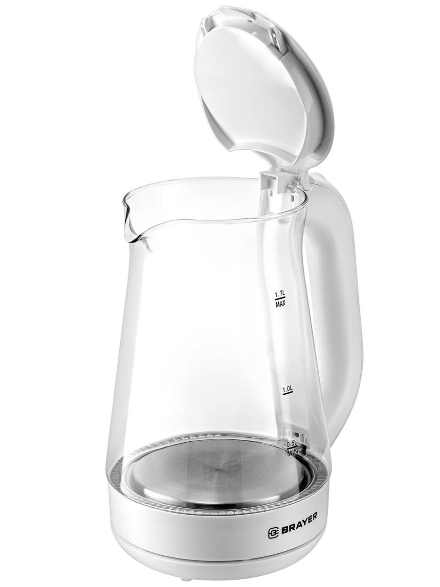 Электрический чайник Brayer BR6112WH (2200 Вт/1,7 л /стекло/прозрачный, белый) - Интернет-магазин У Гриши: бытовая техника, электроника, товары для дома и др.