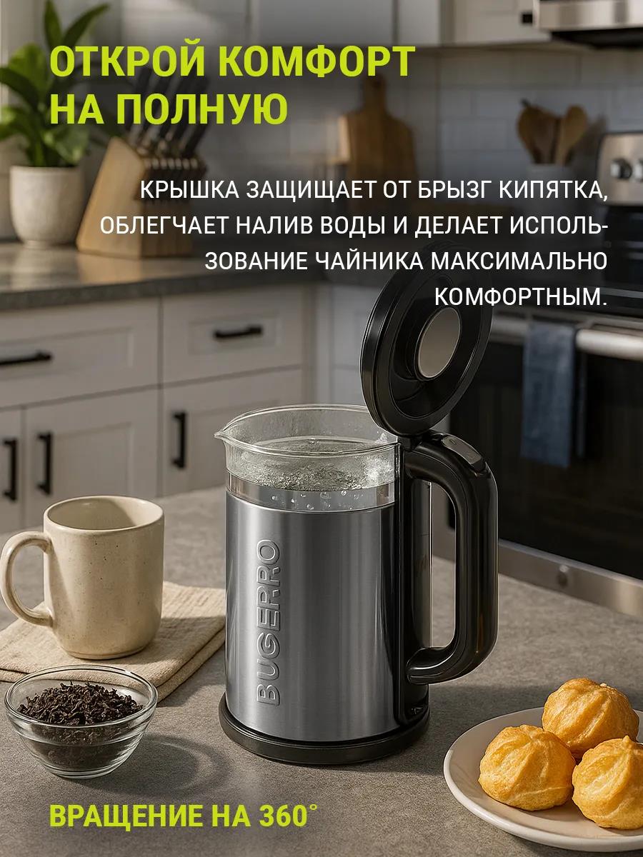 Электрический чайник BUGERRO BG-5602 (1550 Вт/1,8 л /стекло, металл/сталь) - Интернет-магазин У Гриши: бытовая техника, электроника, товары для дома и др.