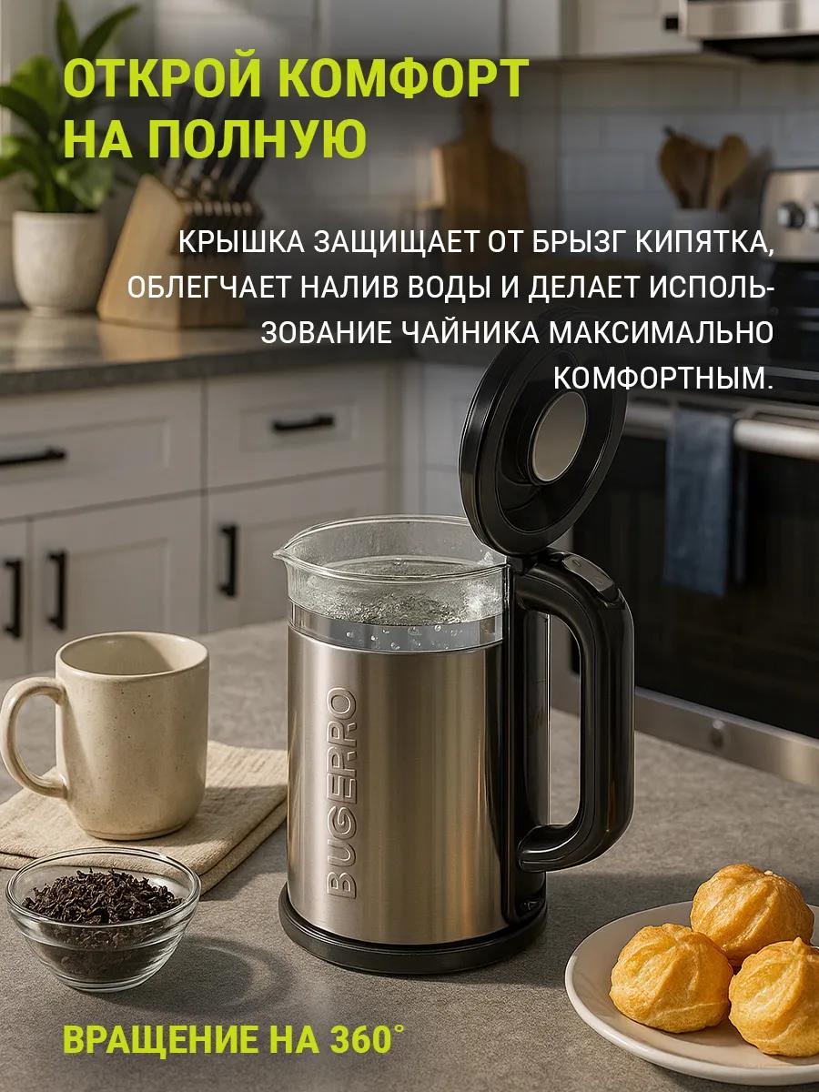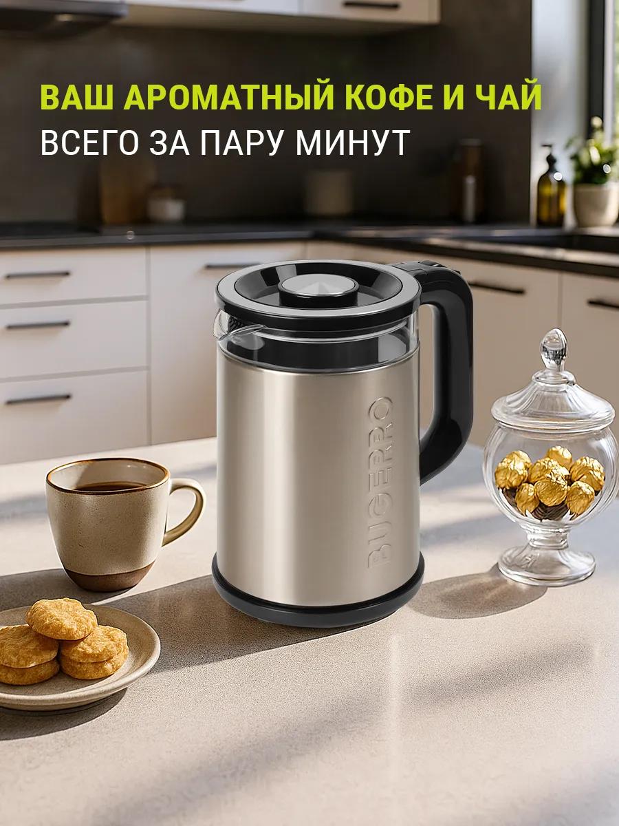 Электрический чайник BUGERRO BG-5603 (1550 Вт/1,8 л /стекло, металл/бежевый, металлик) - Интернет-магазин У Гриши: бытовая техника, электроника, товары для дома и др.