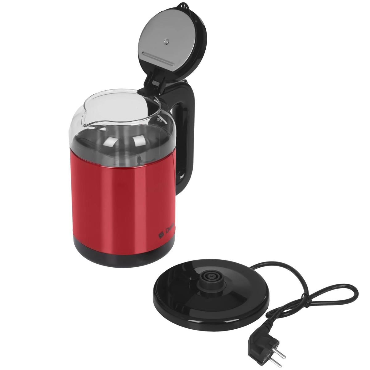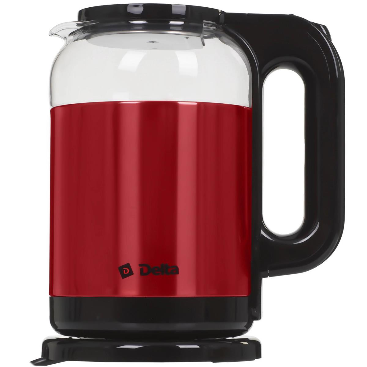Электрический чайник DELTA DL-1115 (1500 Вт/1,8 л /стекло, нержавеющая сталь/красный)