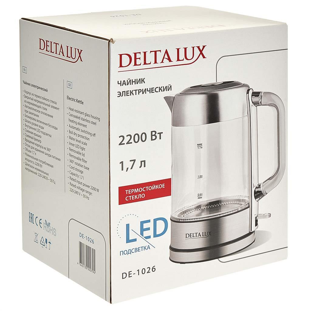 Электрический чайник DELTA LUX DE-1026 (2200 Вт/1,7 л /стекло/сталь, прозрачный) - Интернет-магазин У Гриши: бытовая техника, электроника, товары для дома и др.