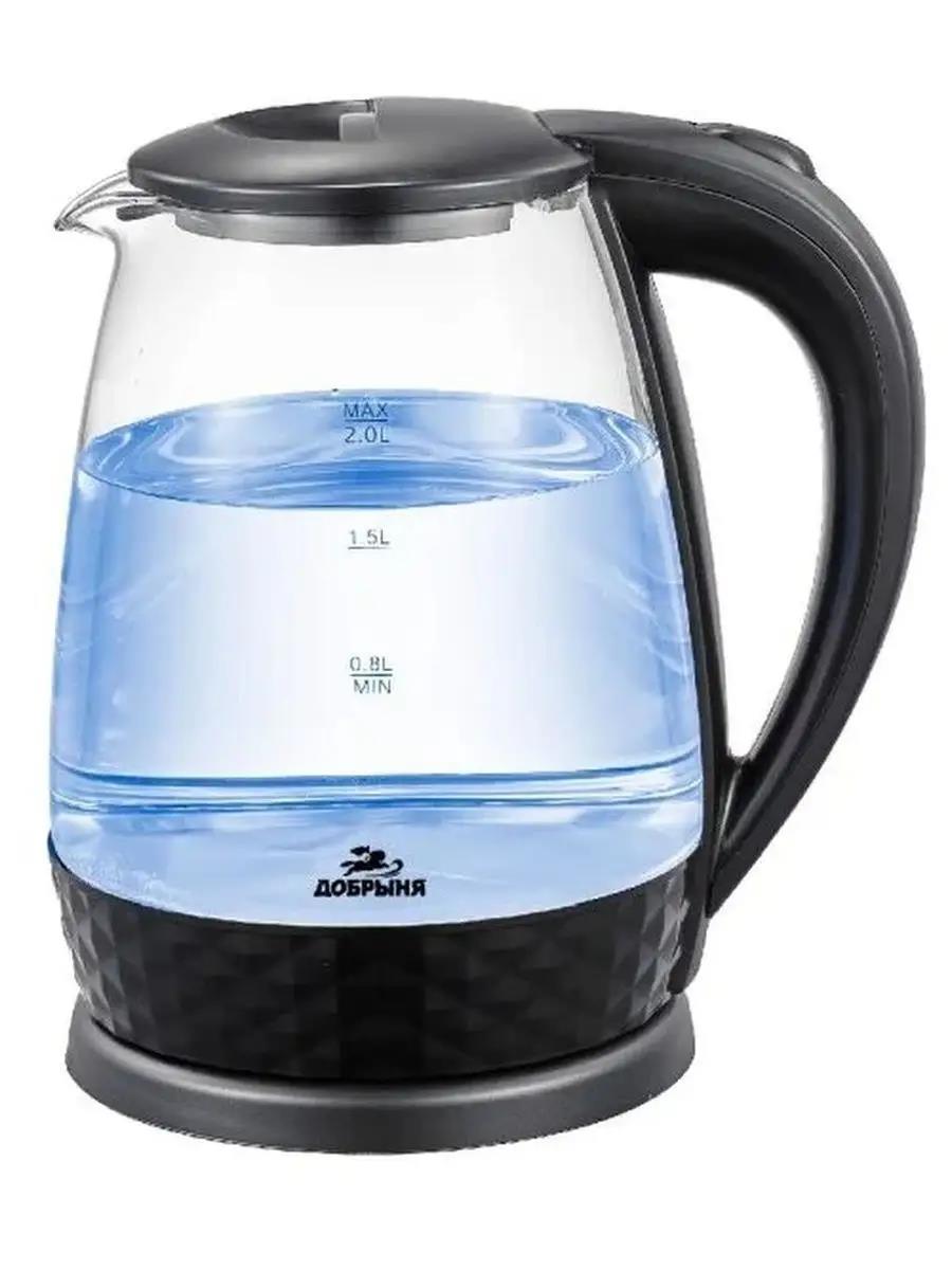 Электрический чайник Добрыня DO-1252 (1800 Вт/1,8 л /стекло/прозрачный, черный) - Интернет-магазин У Гриши: бытовая техника, электроника, товары для дома и др.