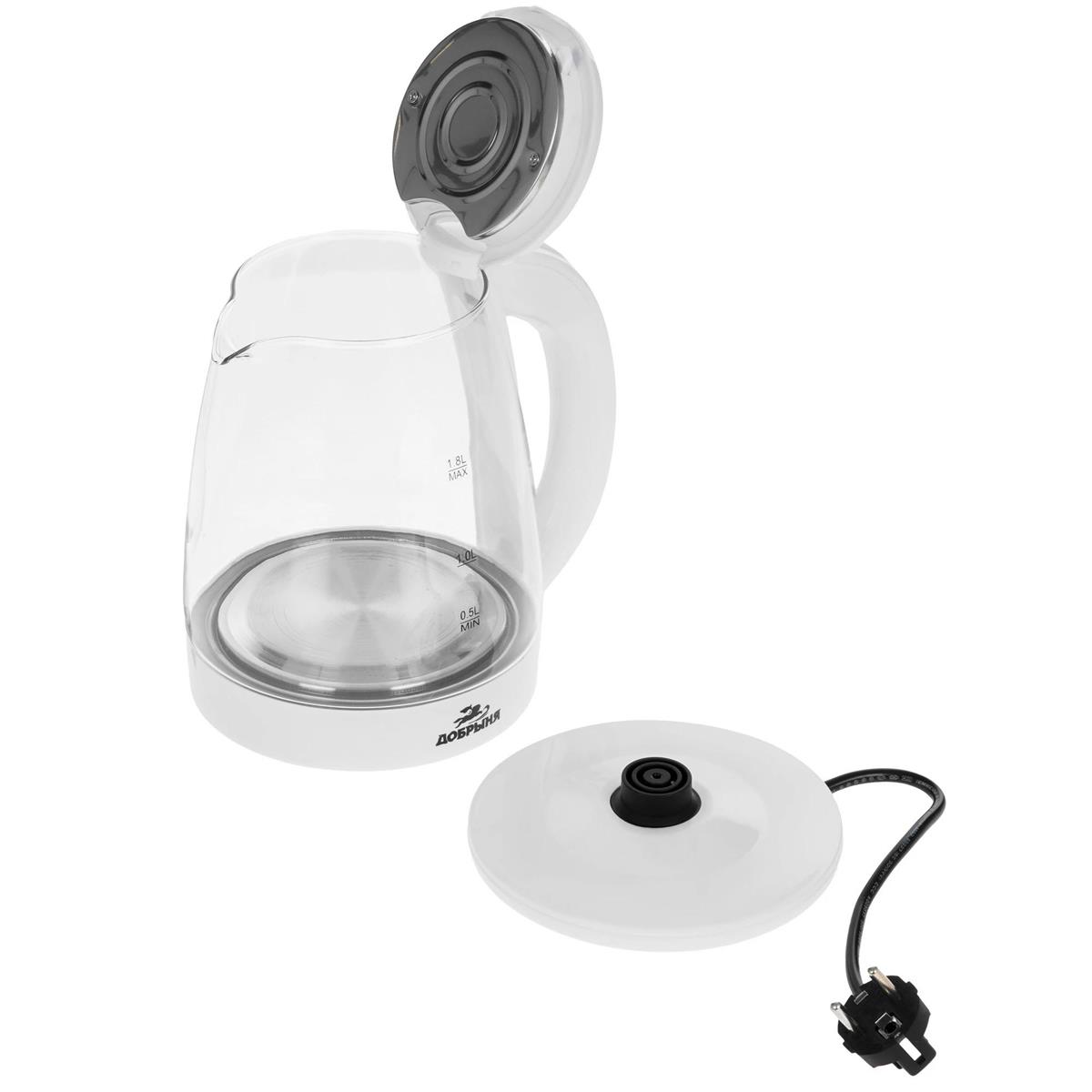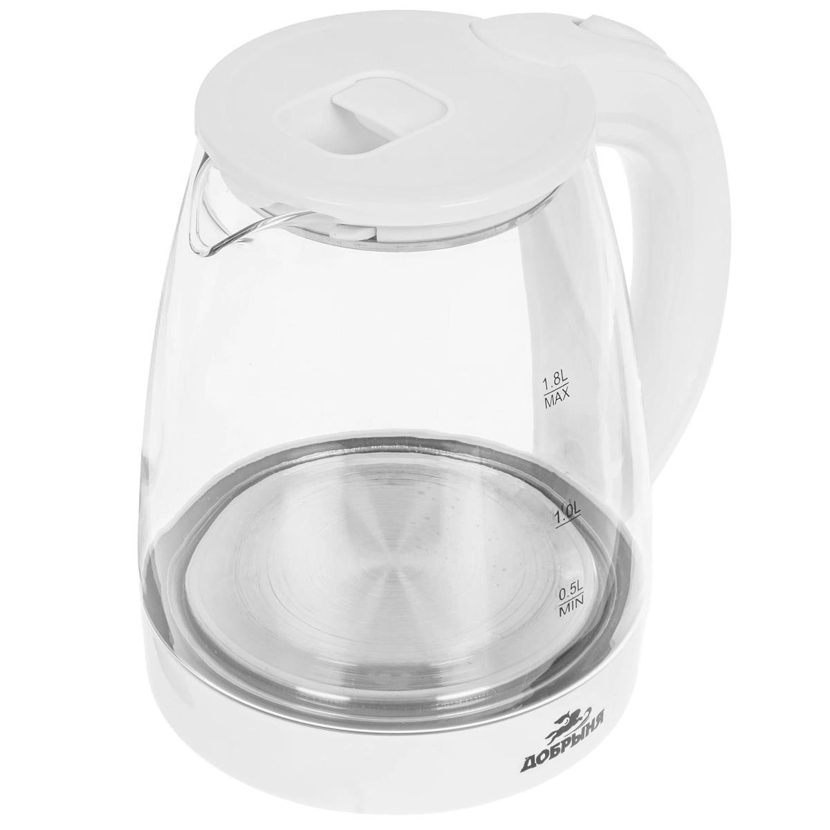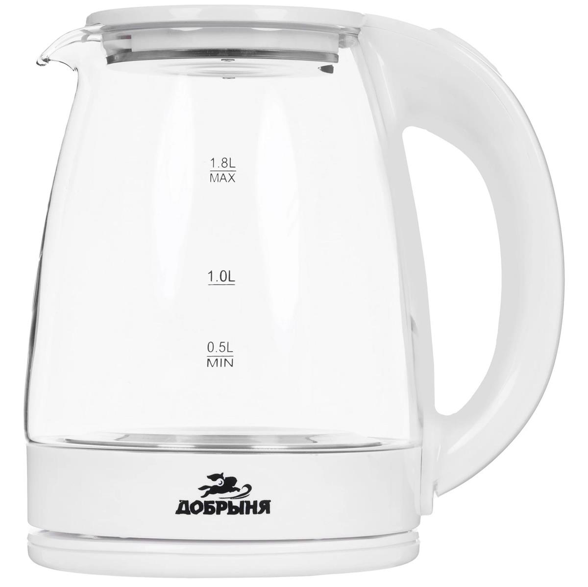 Электрический чайник Добрыня DO-1254W (1800 Вт/1,8 л /стекло, пластик/прозрачный, белый) - Интернет-магазин У Гриши: бытовая техника, электроника, товары для дома и др.
