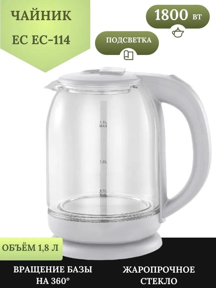 Электрический чайник Добрыня EC-114 (1,8л) 1800Вт,стекло (1800 Вт/1,8 л /стекло/прозрачный, белый) - Интернет-магазин У Гриши: бытовая техника, электроника, товары для дома и др.