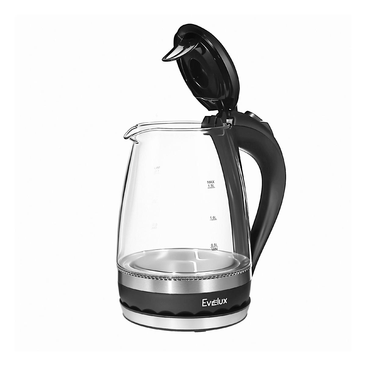 Электрический чайник Evelux EWK 0904 G (2200 Вт/1,5 л /стекло/прозрачный, черный, серебристый) - Интернет-магазин У Гриши: бытовая техника, электроника, товары для дома и др.