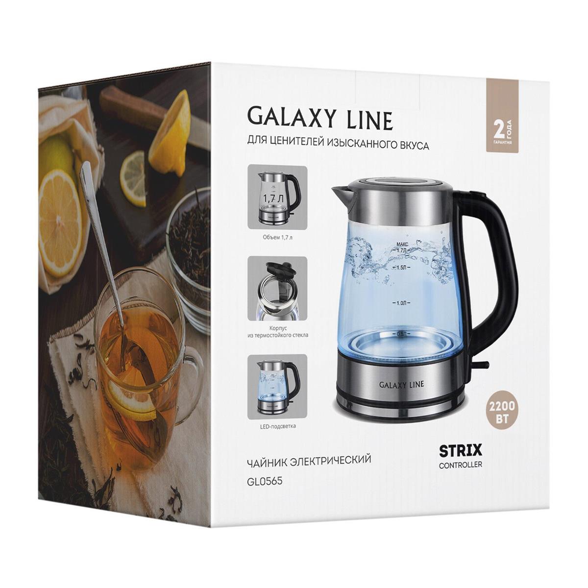 Электрический чайник GALAXY LINE GL 0565 (2200 Вт/1,7 л /стекло/прозрачный, черный, серебристый)