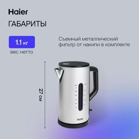 Электрический чайник Haier HK-601 (3000 Вт/1,7 л /нержавеющая сталь/матовое серебро)