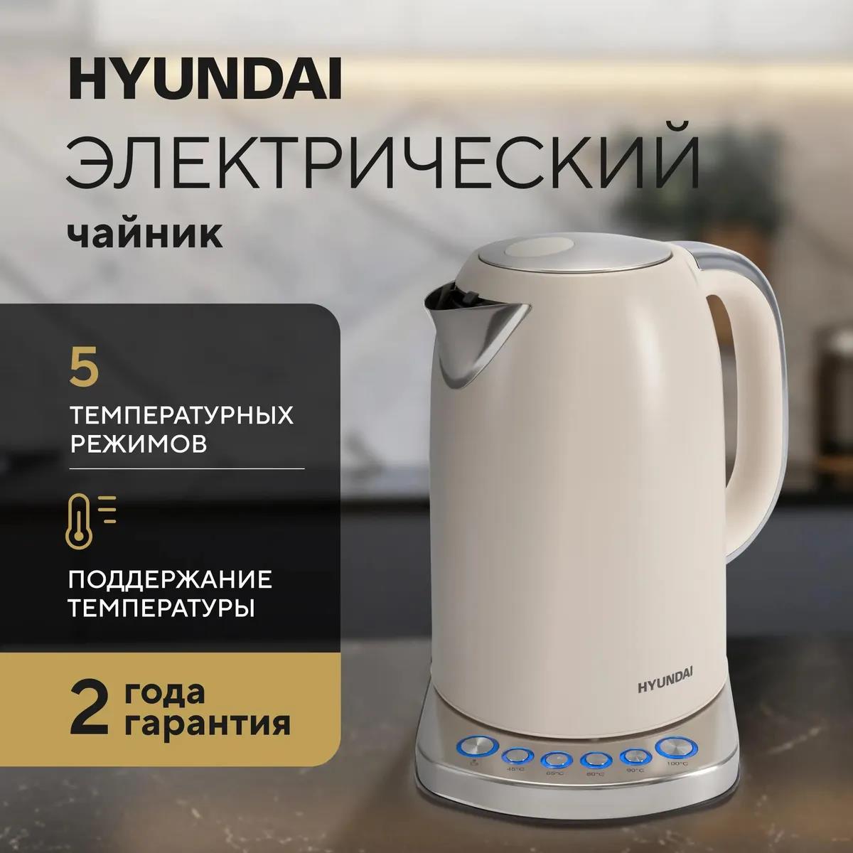 Электрический чайник Hyundai HYK-S5600 (2200 Вт/1,7 л /металл/кремовый, серебристый)