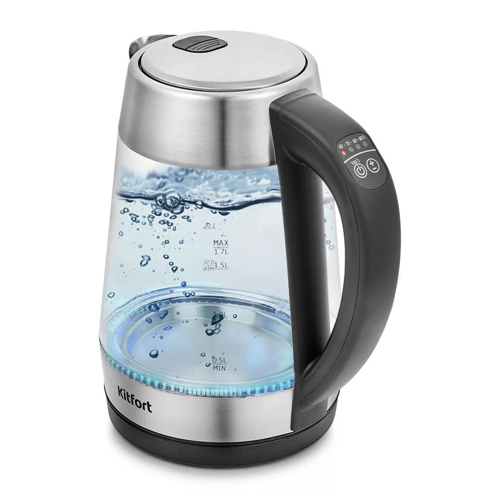Электрический чайник Kitfort КТ-6107 (2000 Вт/1,7 л //прозрачный, черный, серебристый) - Интернет-магазин У Гриши: бытовая техника, электроника, товары для дома и др.