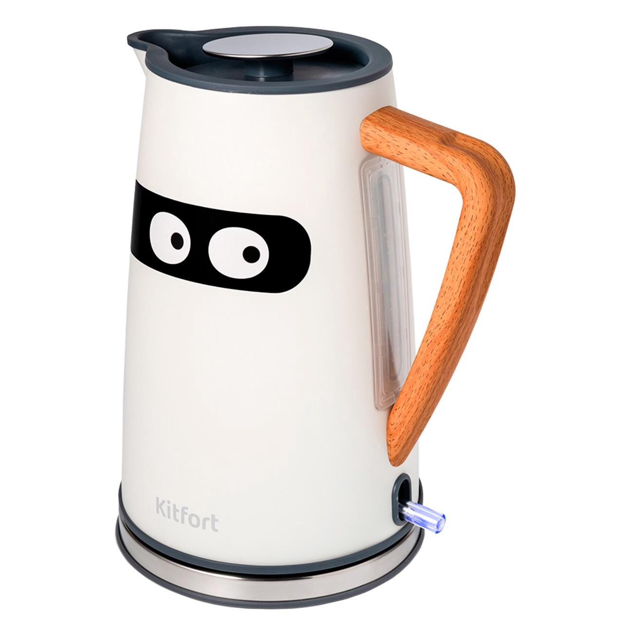 Электрический чайник Kitfort КТ-6148 (2200 Вт/1,7 л /нержавеющая сталь/белый, дерево)