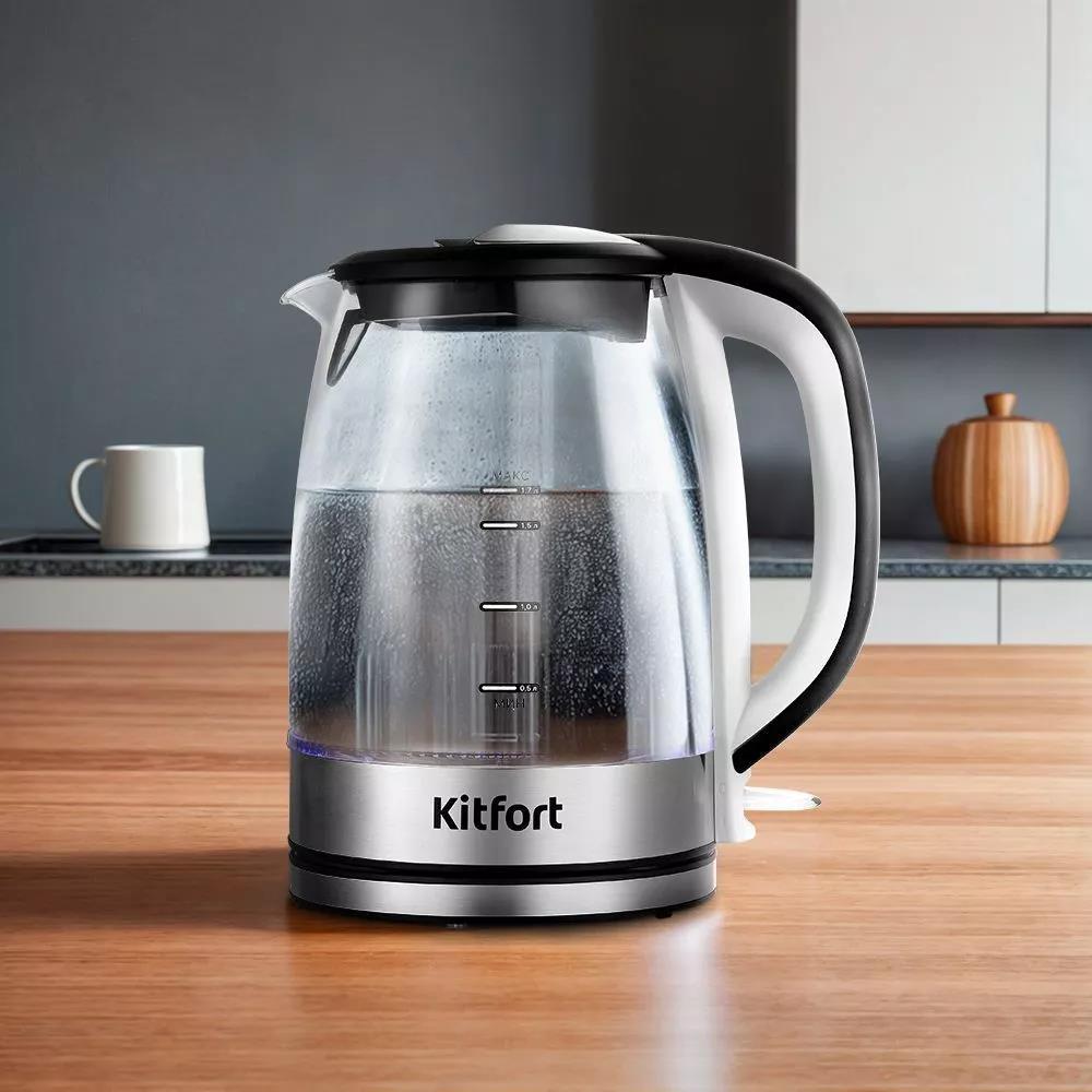 Электрический чайник Kitfort КТ-6628 (2200 Вт/1,7 л /стекло, нержавеющая сталь/прозрачный, черный, серебристый)