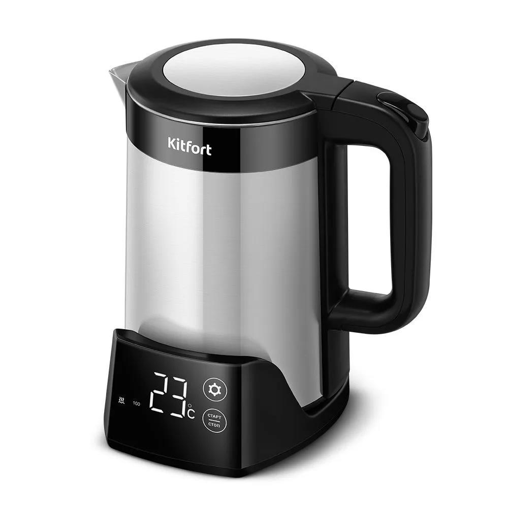 Электрический чайник Kitfort КТ-6691 (1500 Вт/1,5 л /пластик, нержавеющая сталь/черный, серебристый)