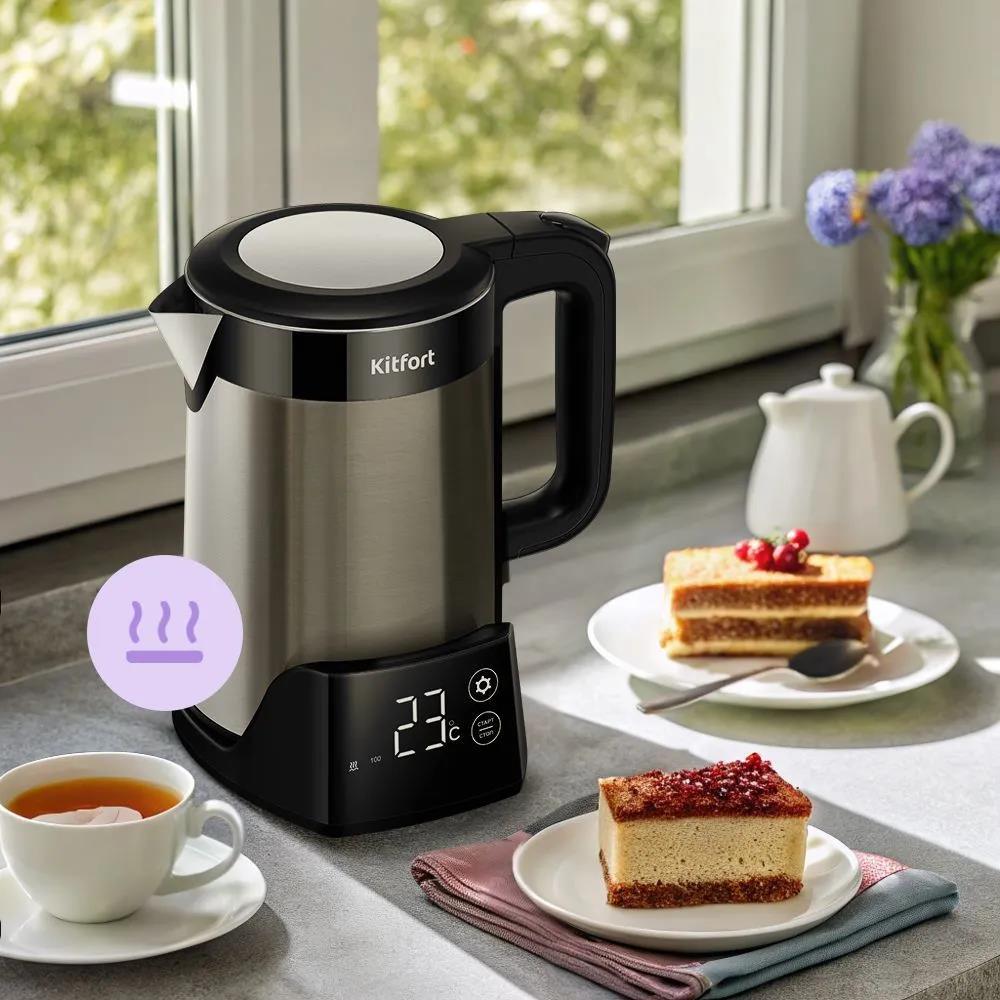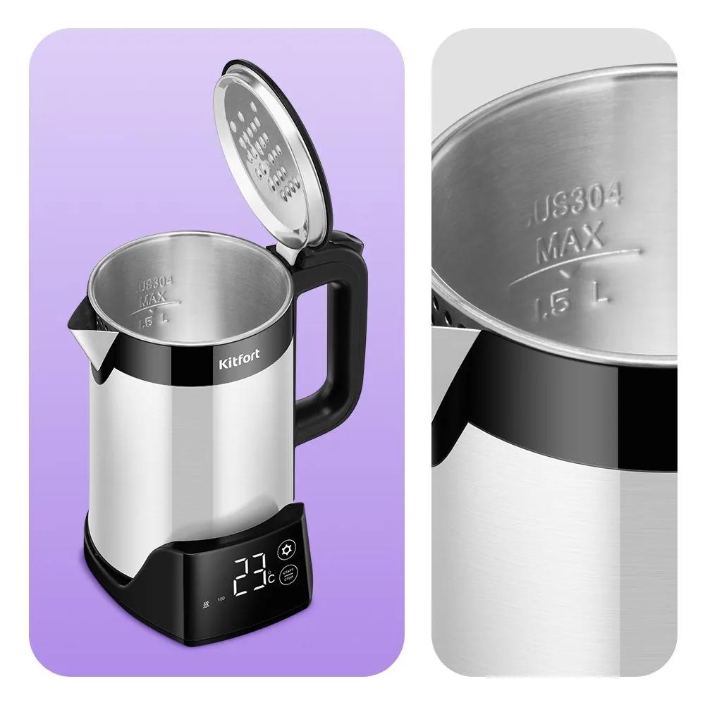 Электрический чайник Kitfort КТ-6691 (1500 Вт/1,5 л /пластик, нержавеющая сталь/черный, серебристый) - Интернет-магазин У Гриши: бытовая техника, электроника, товары для дома и др.