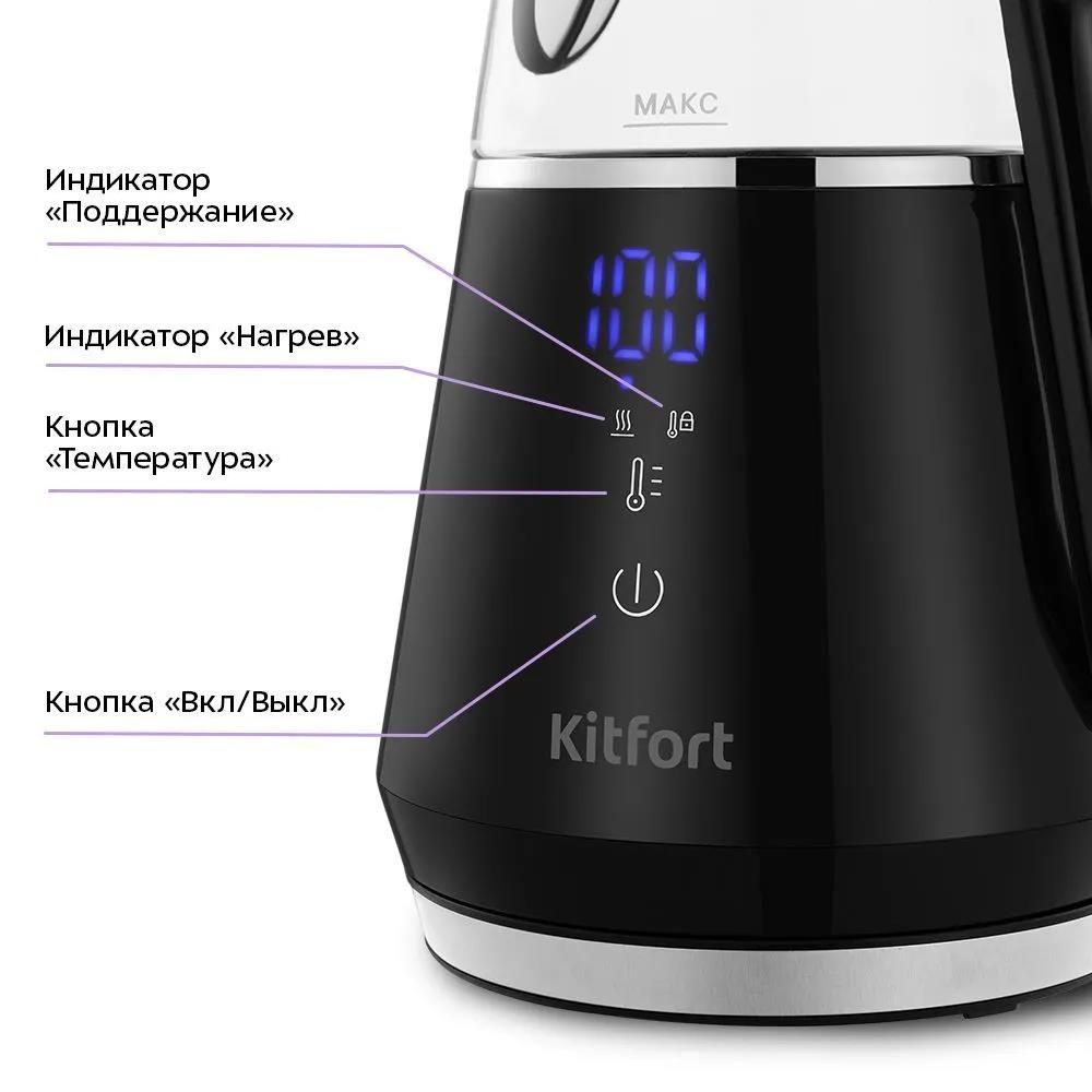 Электрический чайник Kitfort КТ-6696 1 л, 1100 Вт (1100 Вт/1 л /стекло, пластик/прозрачный, черный, серебристый) - Интернет-магазин У Гриши: бытовая техника, электроника, товары для дома и др.