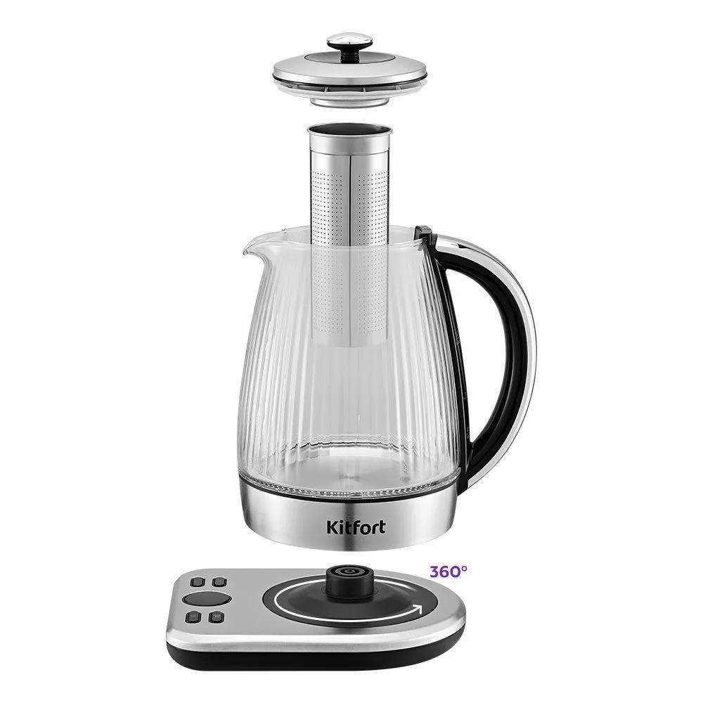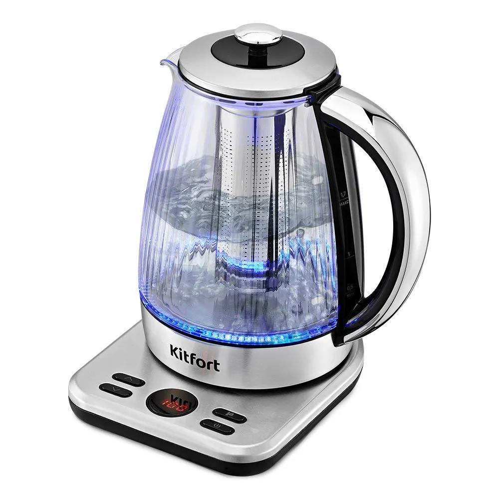 Электрический чайник Kitfort КТ-6711 (2000 Вт/1,7 л /стекло, пластик/прозрачный, серебристый) - Интернет-магазин У Гриши: бытовая техника, электроника, товары для дома и др.