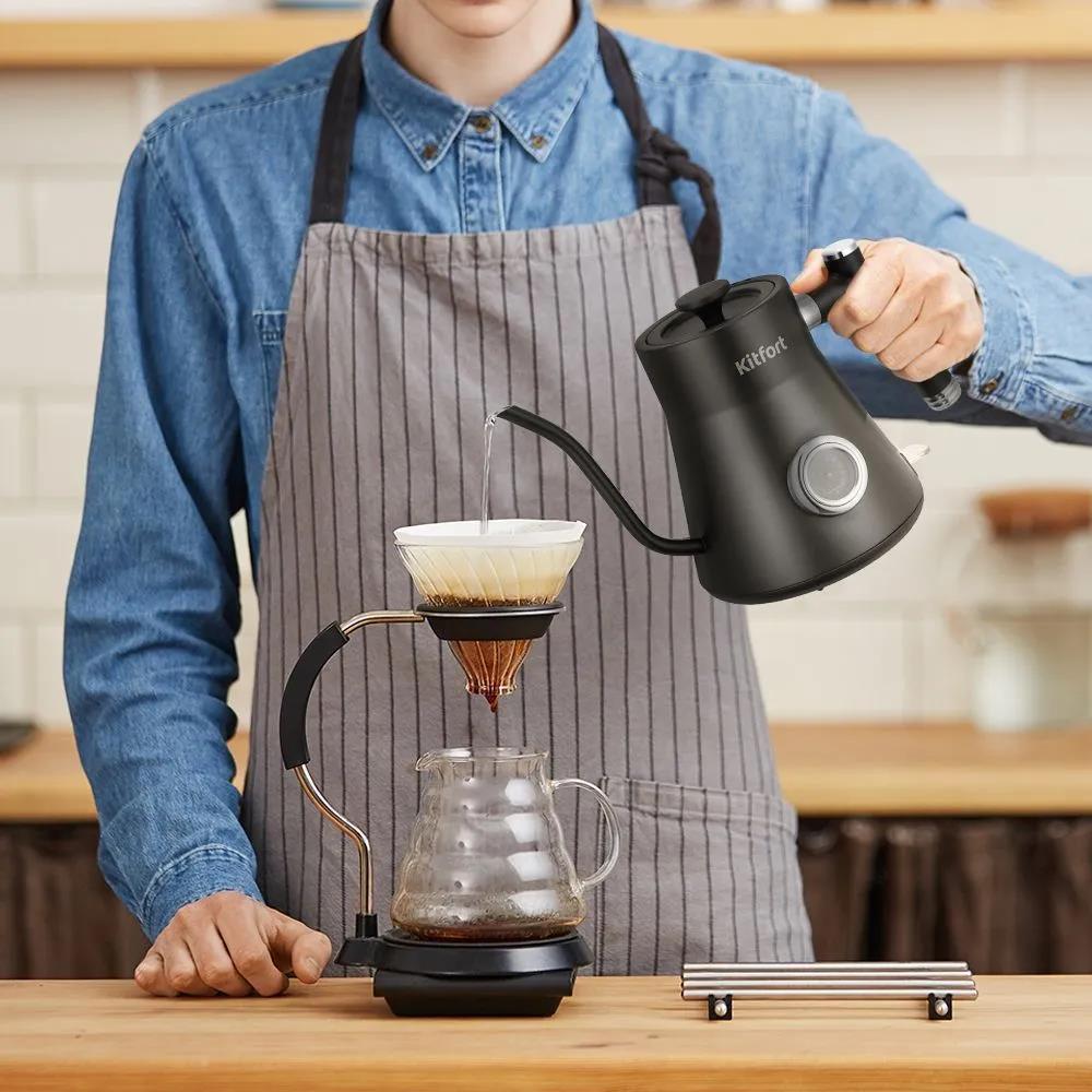 Электрический чайник Kitfort КТ-6760 для варки кофе (1100 Вт/0,8 л /пластик, нержавеющая сталь/черный)