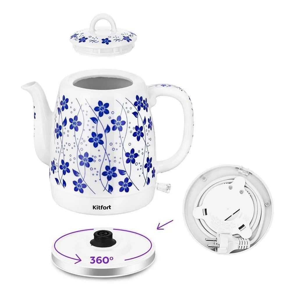 Электрический чайник Kitfort КТ-6788 1л. корпус: керамика (1500 Вт/1 л /керамика/синий, белый) - Интернет-магазин У Гриши: бытовая техника, электроника, товары для дома и др.