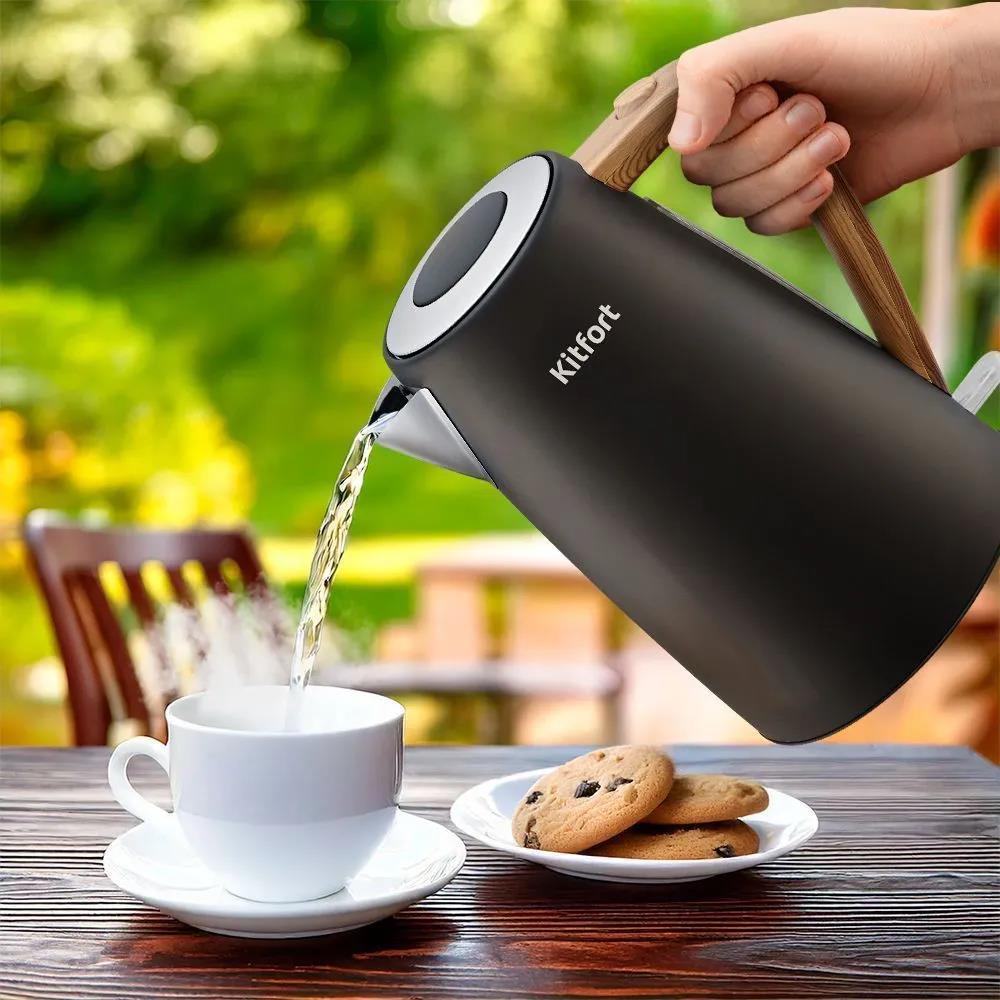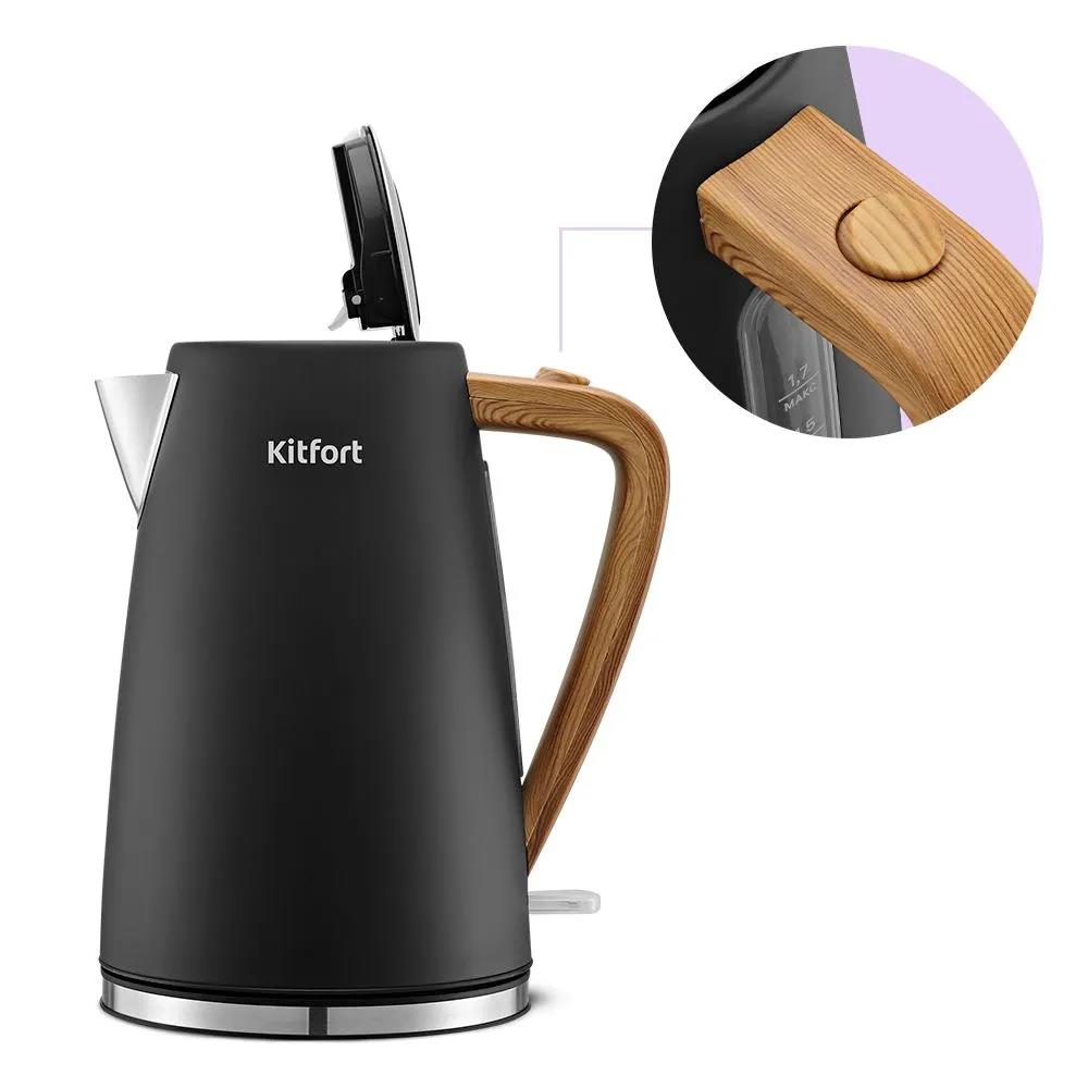 Электрический чайник Kitfort КТ-6792 (2200 Вт/1,7 л /пластик, нержавеющая сталь/черный, дерево) - Интернет-магазин У Гриши: бытовая техника, электроника, товары для дома и др.