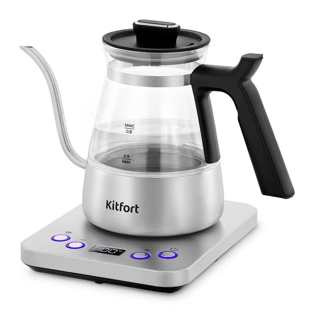 Электрический чайник Kitfort КТ-8707 для варки кофе (1300 Вт/0,8 л /стекло, пластик, нержавеющая сталь/прозрачный, черный, серебристый)