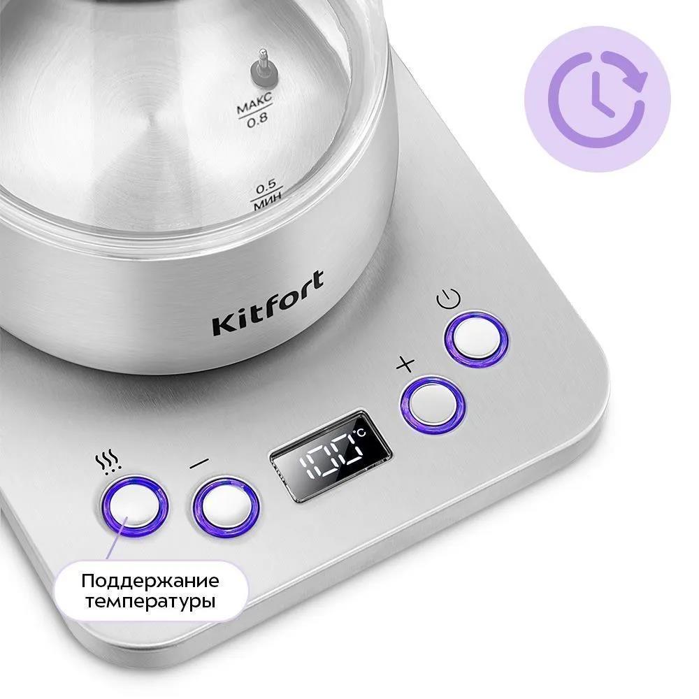 Электрический чайник Kitfort КТ-8707 для варки кофе (1300 Вт/0,8 л /стекло, пластик, нержавеющая сталь/прозрачный, черный, серебристый) - Интернет-магазин У Гриши: бытовая техника, электроника, товары для дома и др.