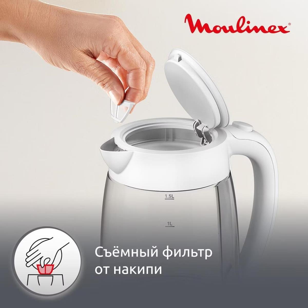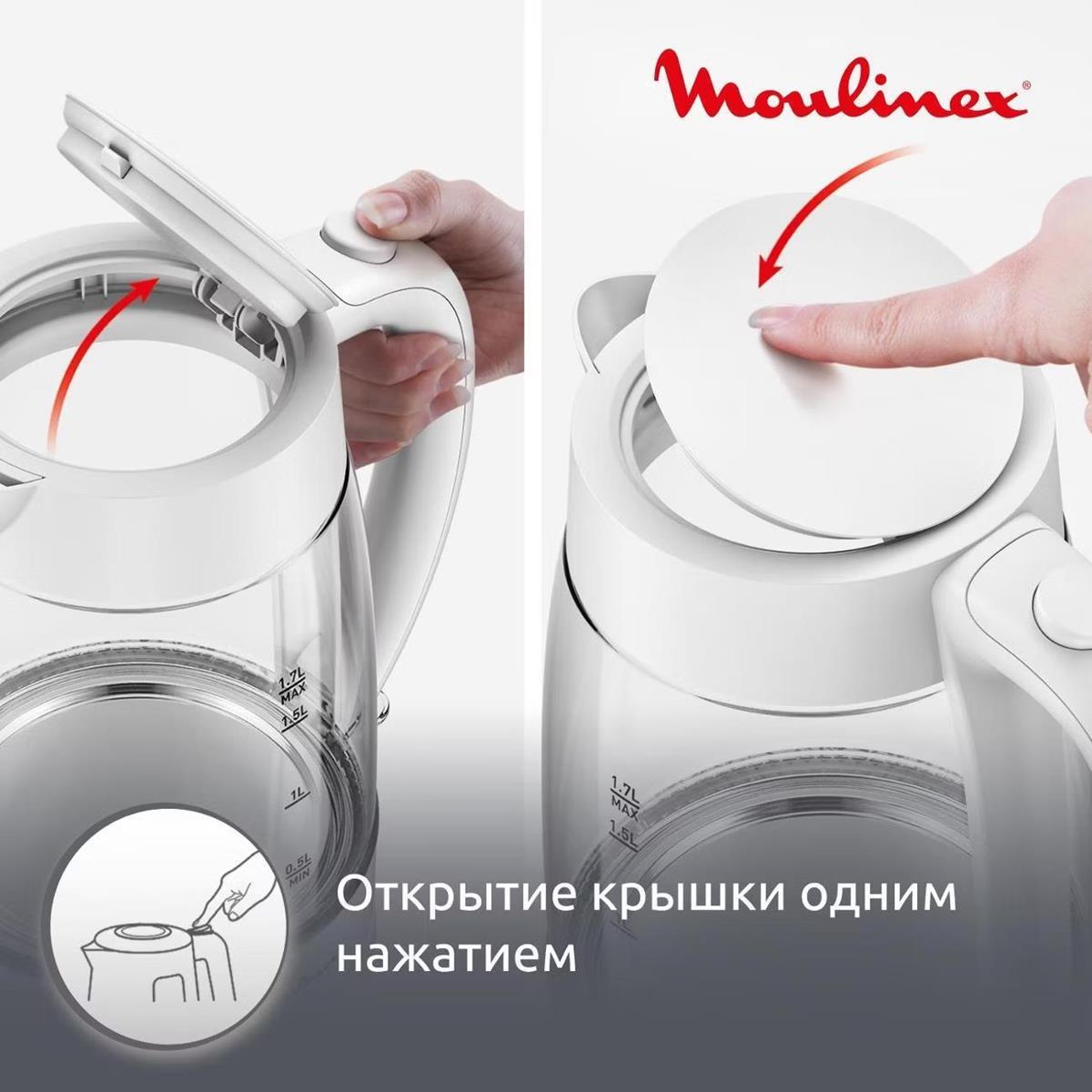 Электрический чайник Moulinex BY2S01F0 (2200 Вт/1,7 л /стекло, пластик/прозрачный, белый)