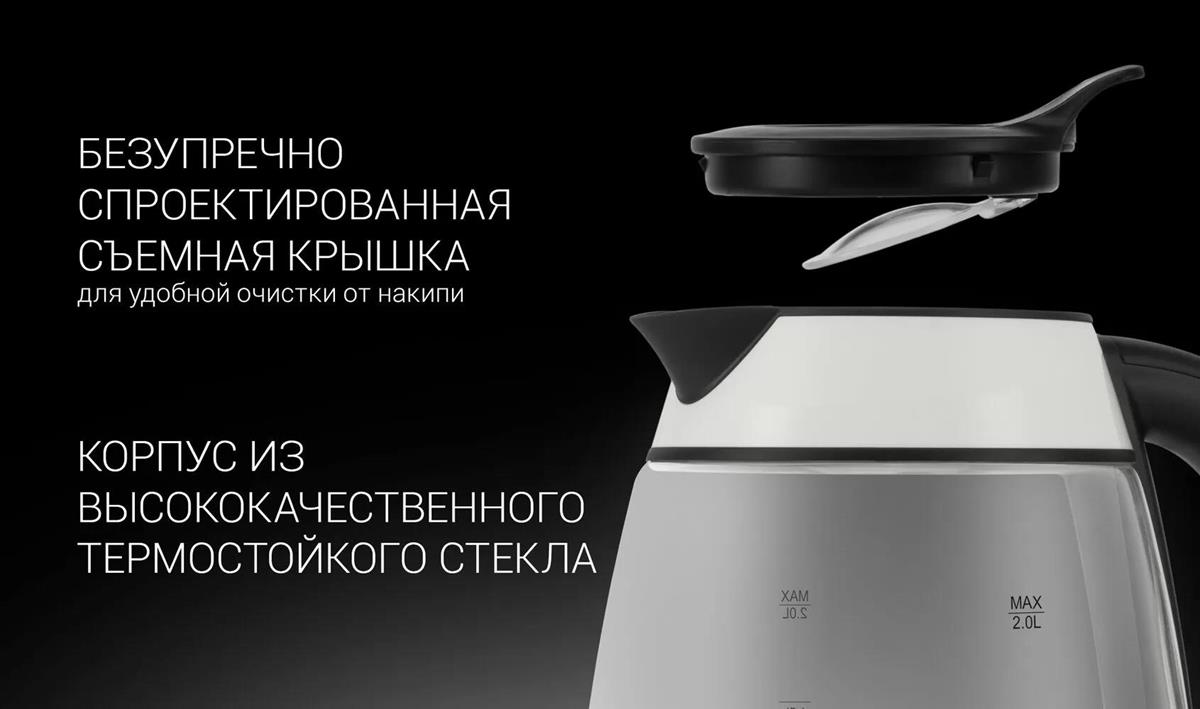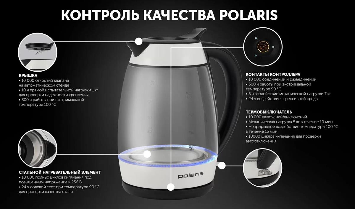 Электрический чайник Polaris PWK-2092СGL (2200 Вт/2 л /стекло/прозрачный, белый, черный) - Интернет-магазин У Гриши: бытовая техника, электроника, товары для дома и др.