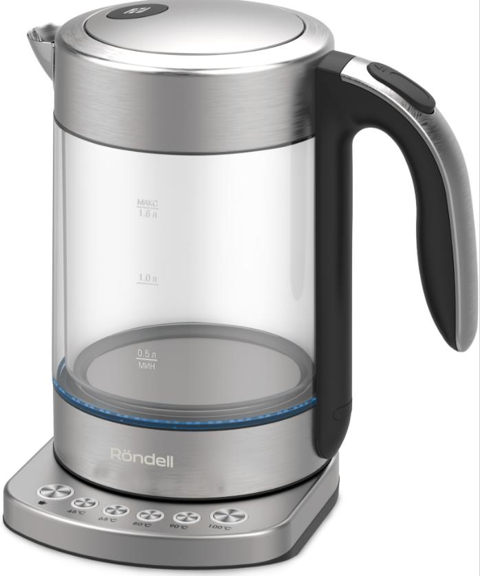 Электрический чайник Rondell RDE-WK888 (2200 Вт/1,6 л /стекло, пластик/прозрачный, серебристый)