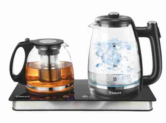 Чайник электрический 2-в-1 с заварочным чайником. Электрический чайник: 1,8 л, стеклянный корпус, подсветка, отключение при закипании и включении без воды. Заварочный чайник: 1,2 л, корпус из стекла, фильтр из нержавеющей стали, поддержание температуры (40-60⁰С, настройка с шагом 5⁰С). Общая мощность: 1500-1800 Вт. Установка на базу из закаленного стекла.