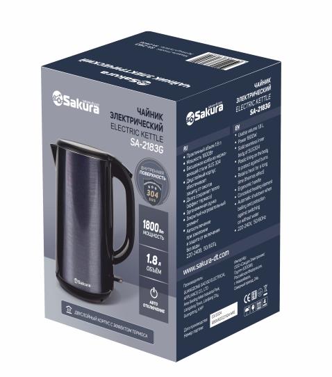 Электрический чайник Sakura SA-2183G (1.8) (1800 Вт/1,8 л /пластик, нержавеющая сталь/серый) - Интернет-магазин У Гриши: бытовая техника, электроника, товары для дома и др.