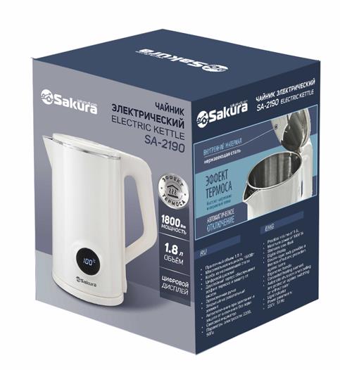 Электрический чайник Sakura SA-2190DW (1.8) LCD дисплей (1800 Вт/1,8 л /пластик, нержавеющая сталь/белый)