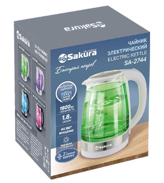 Электрический чайник Sakura SA-2744V (1.8) стекл двухслойн подсв (1800 Вт/1,8 л /стекло, металл, пластик/прозрачный, белый, фиолетовый) - Интернет-магазин У Гриши: бытовая техника, электроника, товары для дома и др.