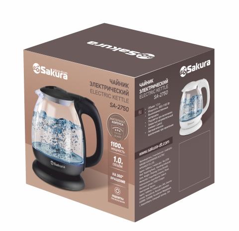 Электрический чайник Sakura SA-2750W (1100 Вт/1 л /стекло/прозрачный, белый) - Интернет-магазин У Гриши: бытовая техника, электроника, товары для дома и др.