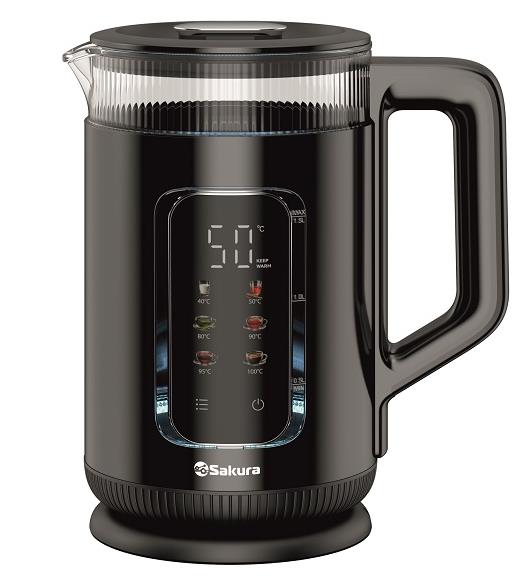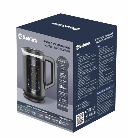 Электрический чайник Sakura SA-2751DBK (1800 Вт/1,5 л /стекло, металл, пластик/черный)