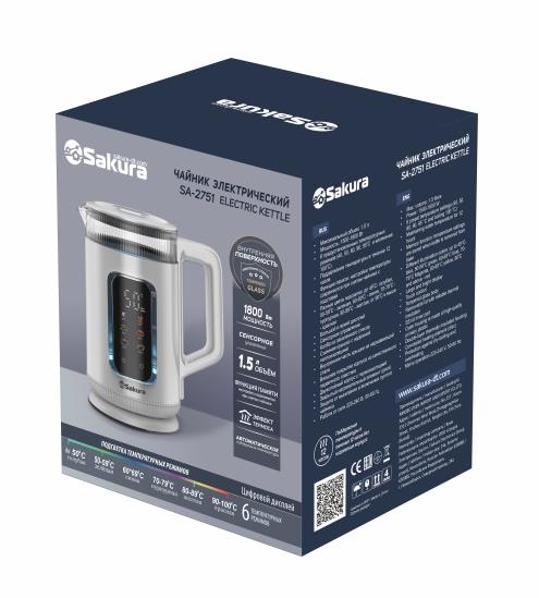 Электрический чайник Sakura SA-2751DW (1800 Вт/1,5 л /стекло, металл, пластик/белый) - Интернет-магазин У Гриши: бытовая техника, электроника, товары для дома и др.